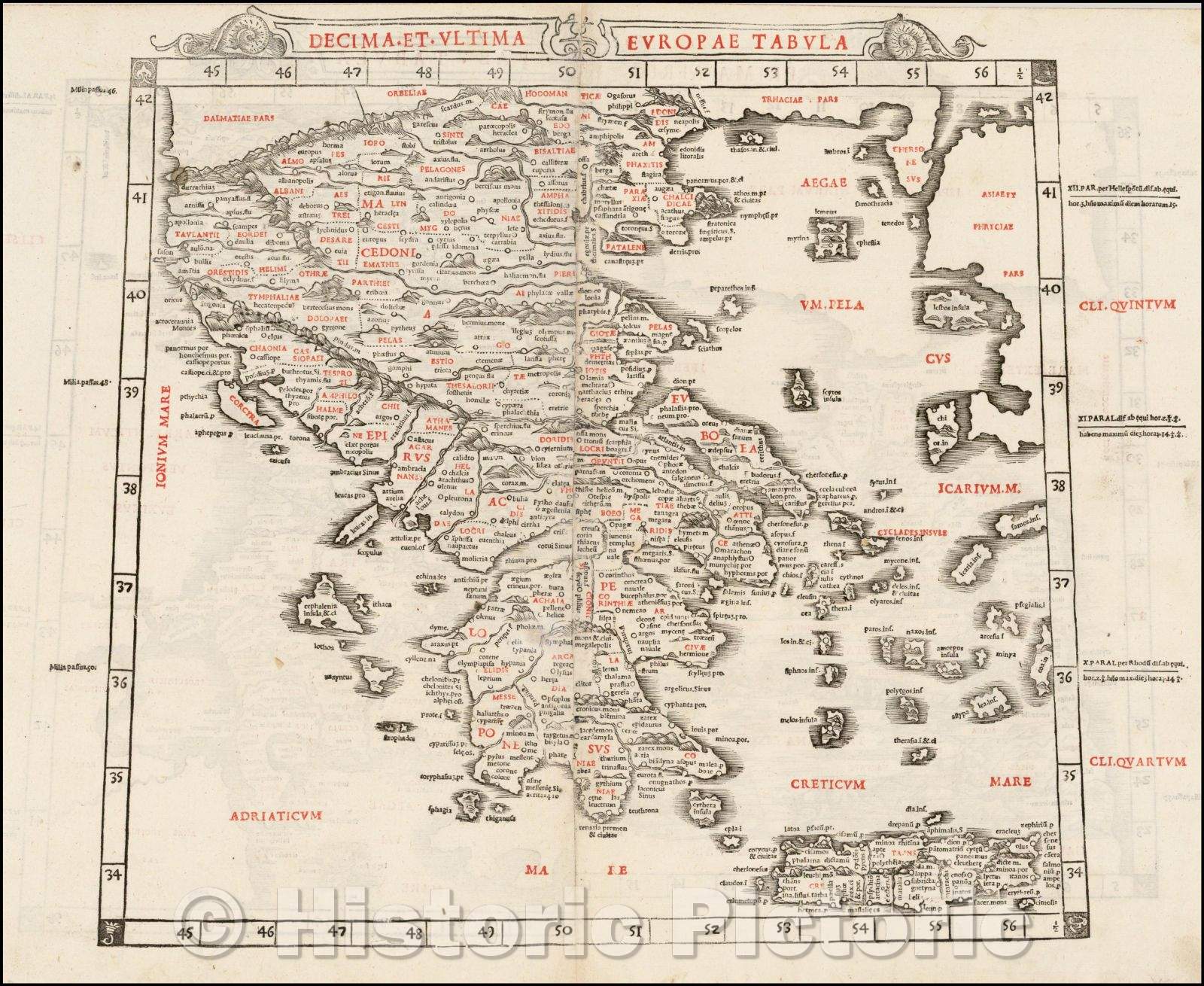 Historic Map - Decima et Ultima Europa Tabula Greece, 1511, Bernardus Sylvanus v2