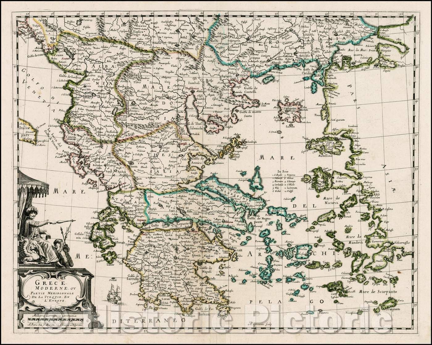 Historic Map - Grece Moderne ou Partie Meridionale De La Turquie En L'Europe/Map of Greece and Turkey, 1656, Nicolas Sanson - Vintage Wall Art