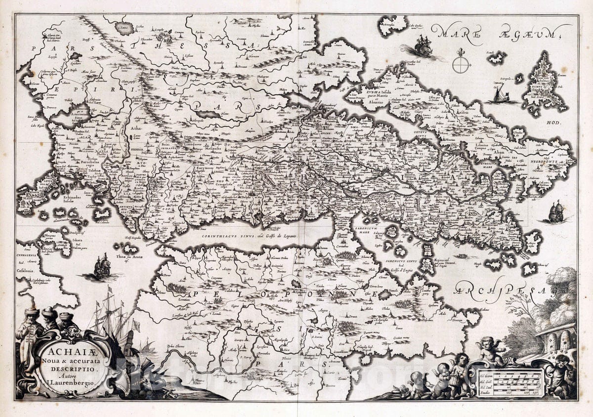 Greece, 1650 Achaiae Noua & accurata Descriptio. , Vintage Wall Art