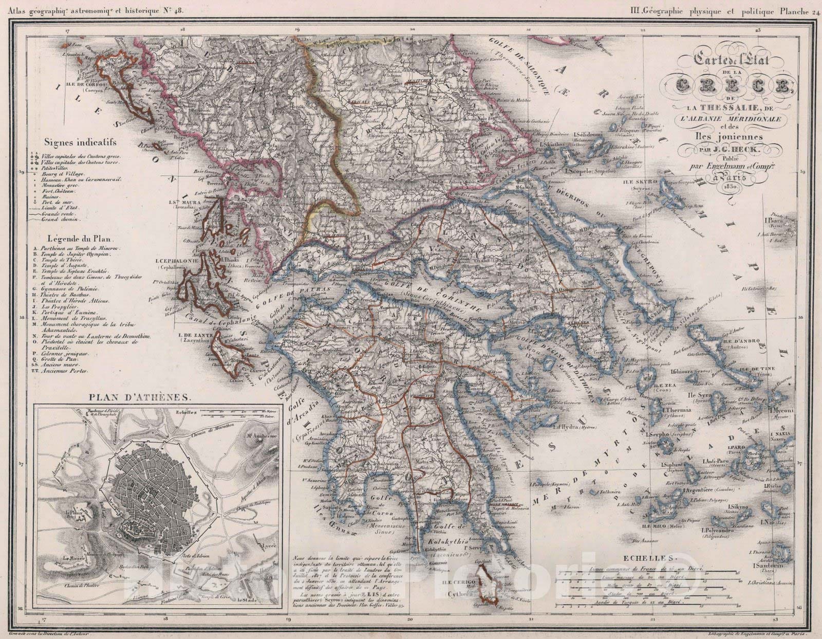 Historic Map : Greece, 1830 48. Carte de l'Etat de la Grece de la Thessalie. , Vintage Wall Art