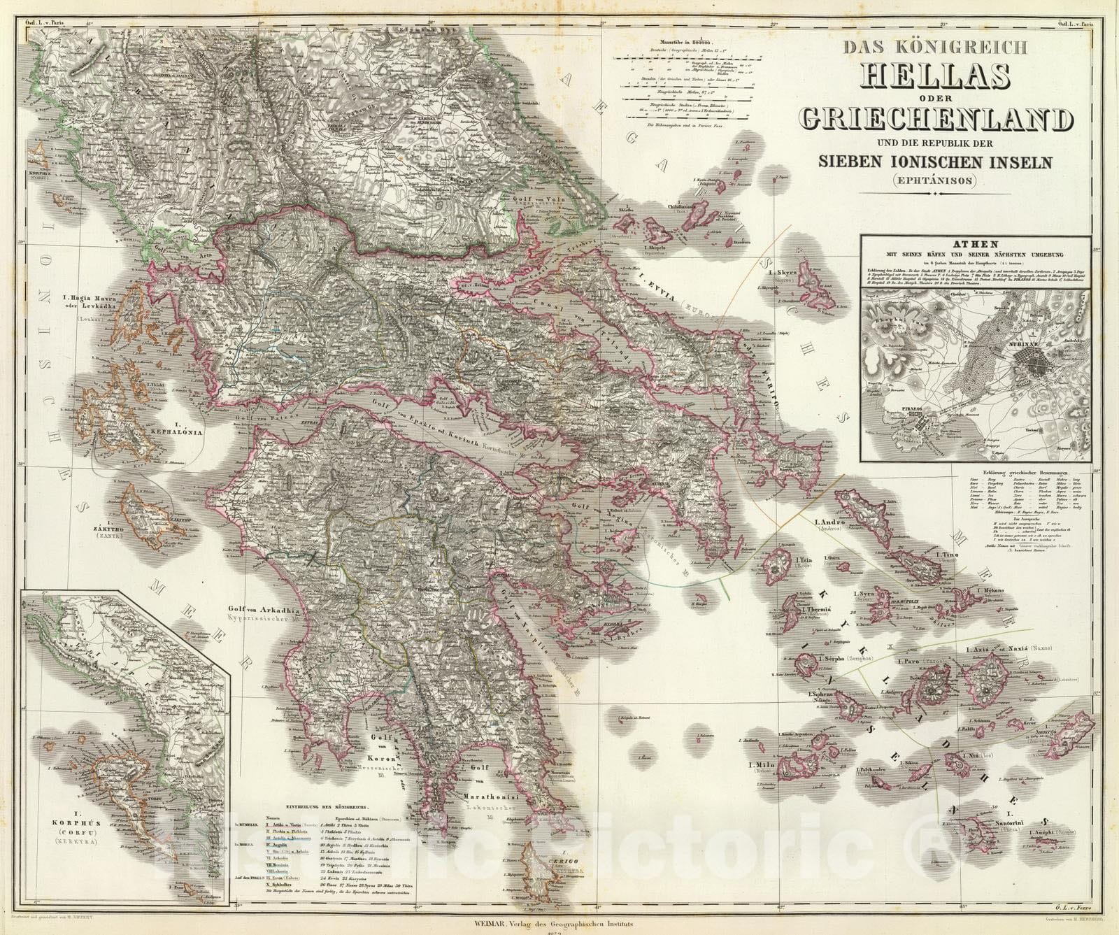 Historic Map : Greece, Athens Region (Greece) 1853 Hellas, Ionischen Inseln. , Vintage Wall Art