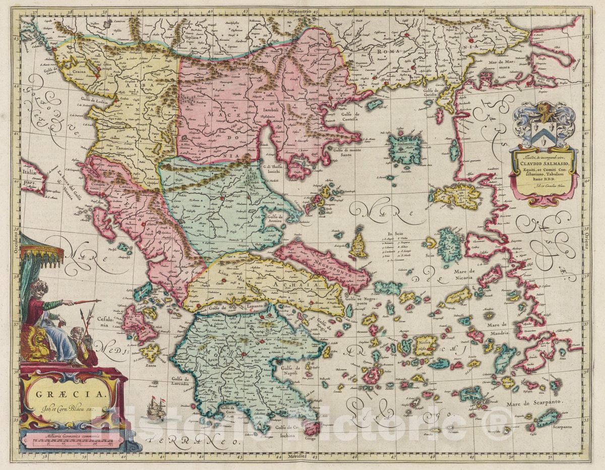 Historic Map : Greece, Atlas Maior Sive Cosmographia Blaviana, Qua Solvm, Salvm, Coelvm, Accvratissime Describvntvr. Graecia , Vintage Wall Art