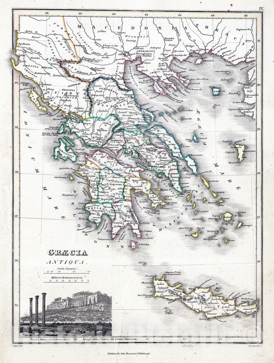 Greece, Balkan Peninsula 1824 Graecia Antiqua , Vintage Wall Art