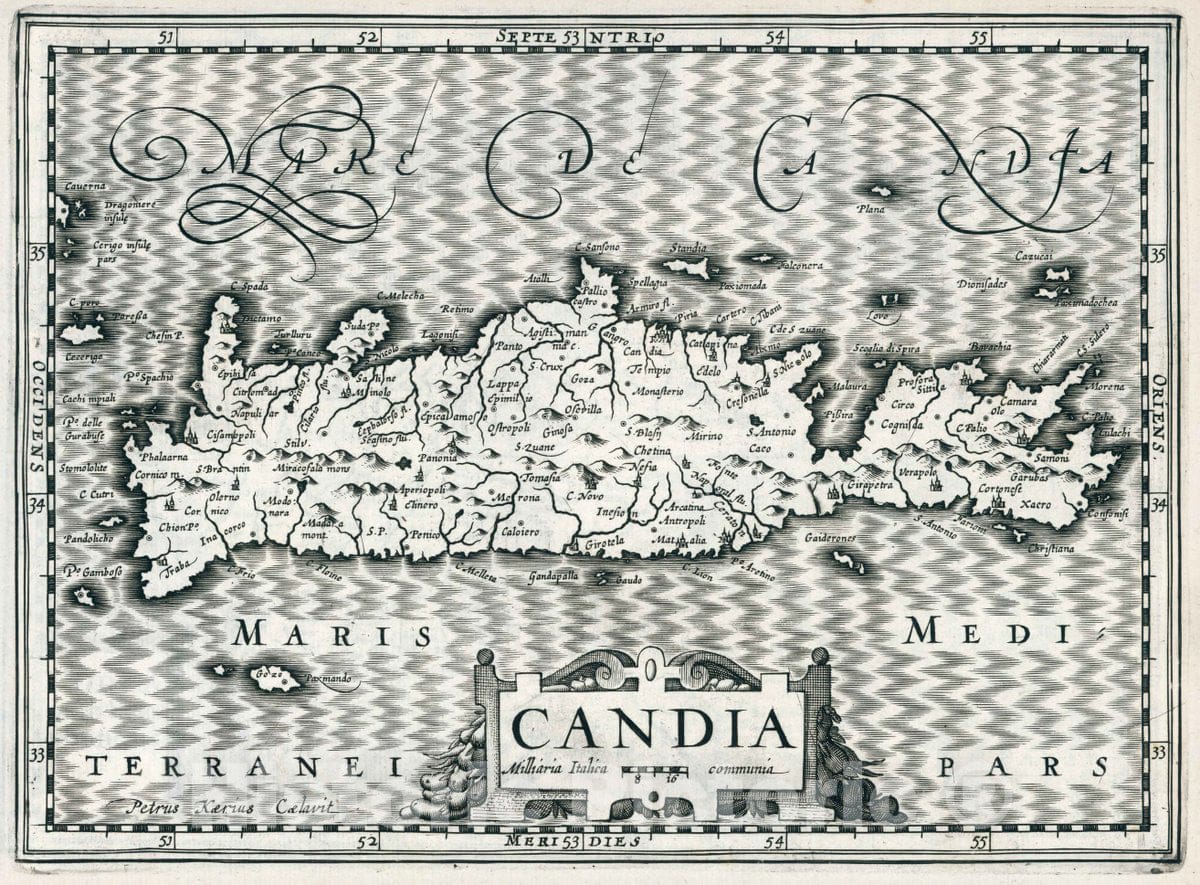 Historic Map : Greece, Crete (Greece) Candia. Atlas sive Cosmographicae Meditationes de Fabrica Mundi et fabricati Figura, 1636 Atlas , Vintage Wall Art