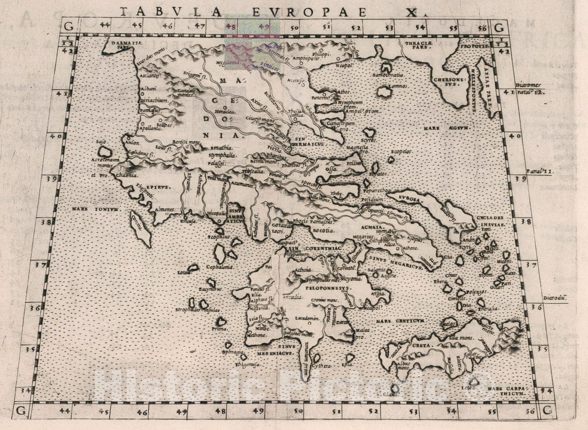 Greece, Crete Tabvla Evropae X. D'Evropa, Decima tavola Antica, 1561 Atlas , Vintage Wall Art