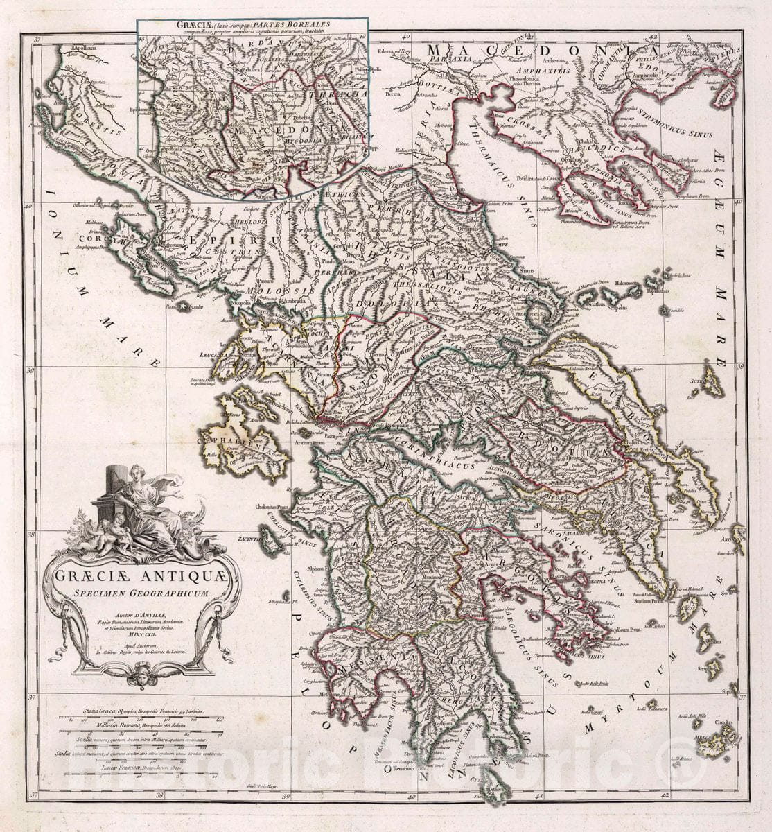 Greece, Graeciae antiquae, Specimen geographicum, 1762 Atlas , Vintage Wall Art