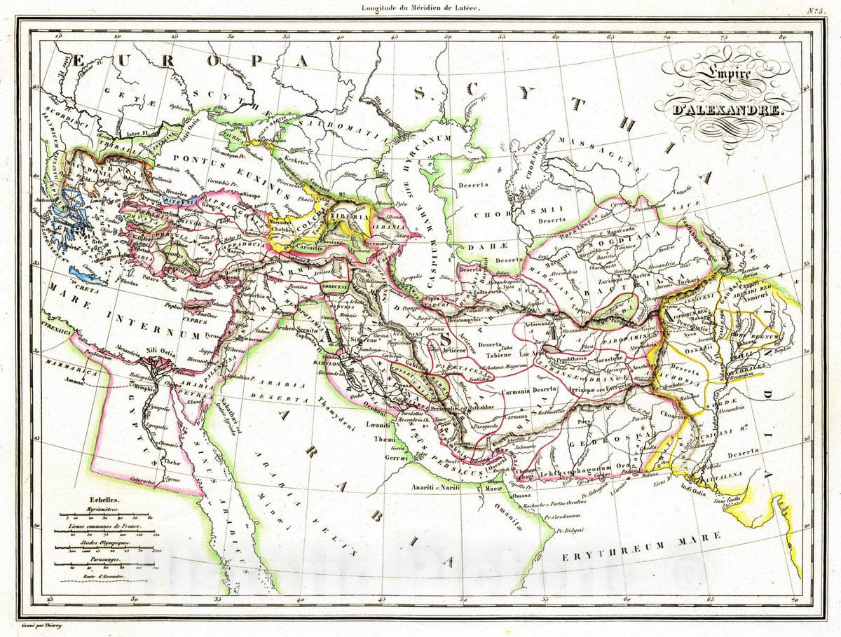 Historic Map : Greece; India, Middle East 1837 Empire d'Alexandre. , Vintage Wall Art