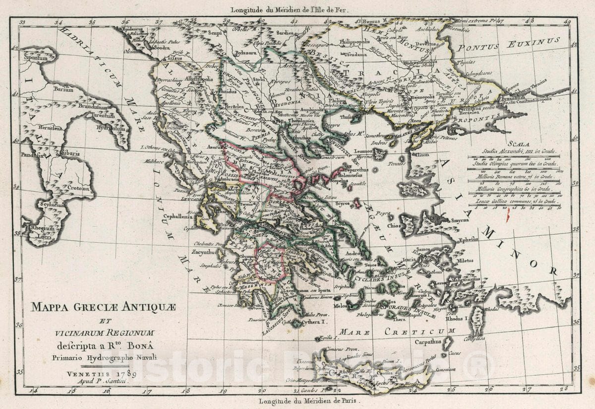 Historic Map : Greece, Mappa Greciae Antiquae et vicinarum regionum, 1789 Atlas , Vintage Wall Art