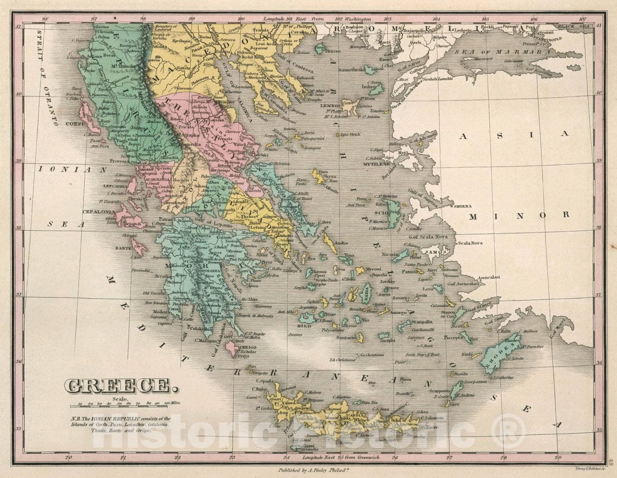 Historic Map : Greece. Young & Delleker Sc. Published by A. Finley, Philada, 1827 Atlas - Vintage Wall Art