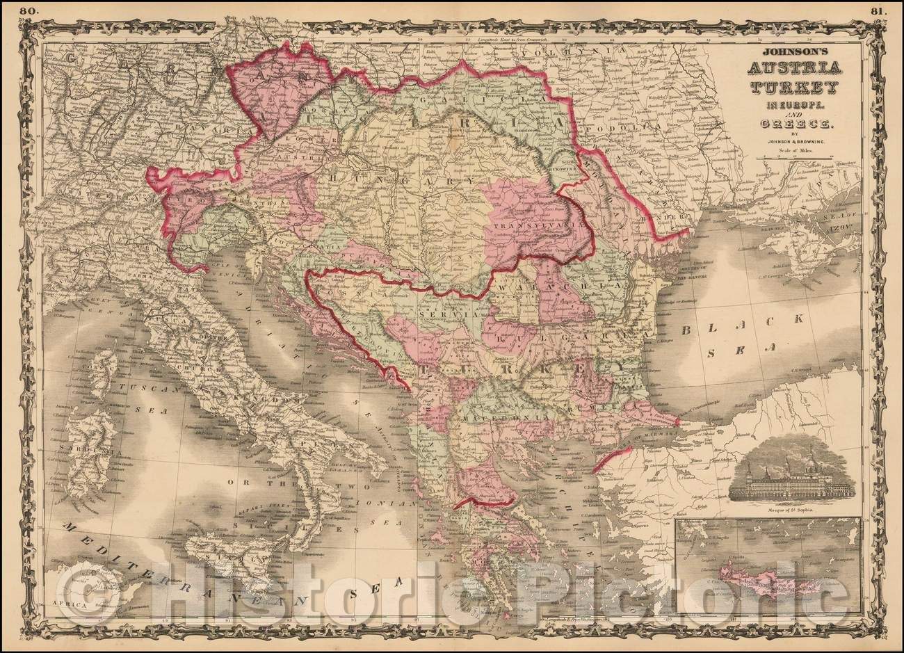 Historic Map - Johnson's Austria Turkey in Europe and Greece, 1861, Alvin Jewett Johnson - Vintage Wall Art