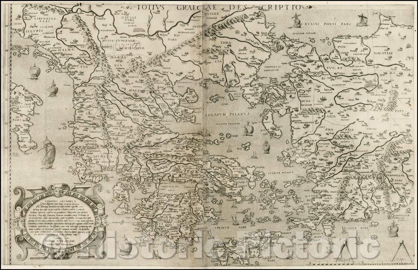 Historic Map - Totius Graeciae Descriptio/Ferdinando Bertelli's 1564 edition of Nikolaos Sophianos's landmark 8 sheet Map of Greece, 1564, Ferrando Bertelli - Vintage Wall Art