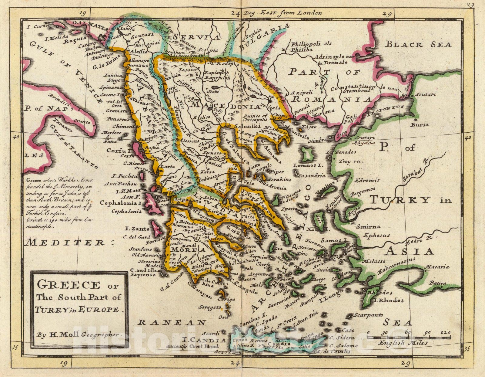 • .Historic Map : World Atlas Map, Greece or the south part of Turky in Europe. 1736 - Vintage Wall Art