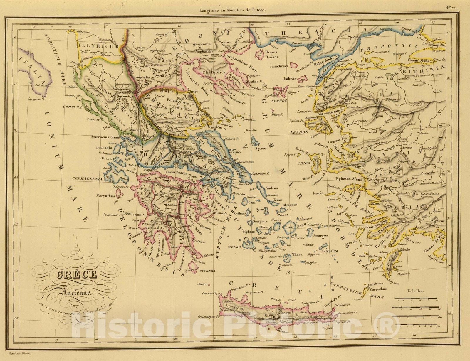 Historic Wall Map : Greece; Crete, Near East 1837 Grece Ancienne au Commencement de l'Ere Chretienne. , Vintage Wall Art