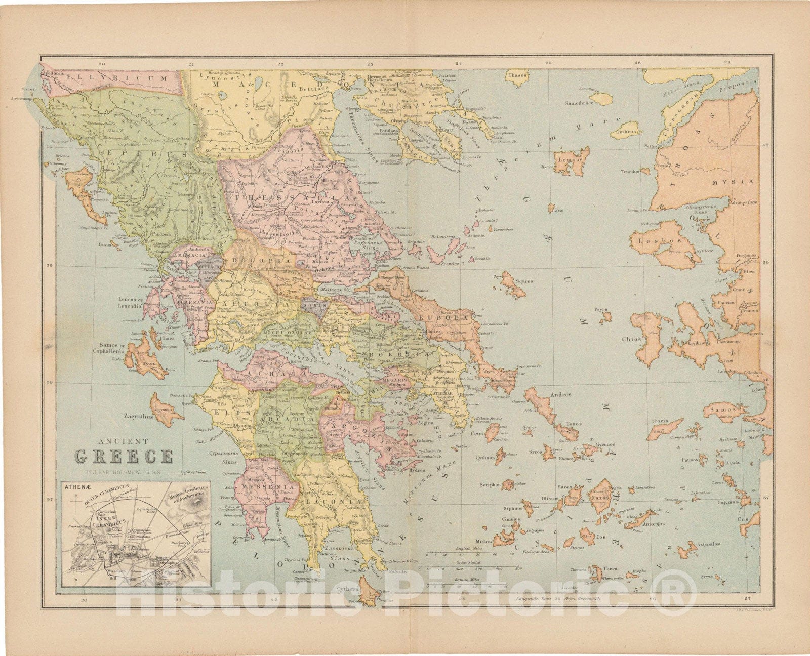 Historic Map : Greece 1875 , Student Atlas of Modern Geography , Vintage Wall Art