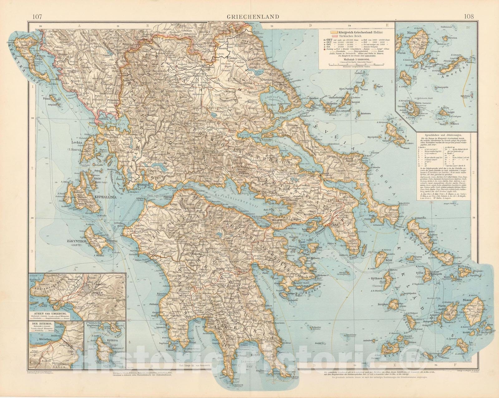 Historic Map : Greece 1899 , Andrees Allgemeiner Handatlas , Vintage Wall Art