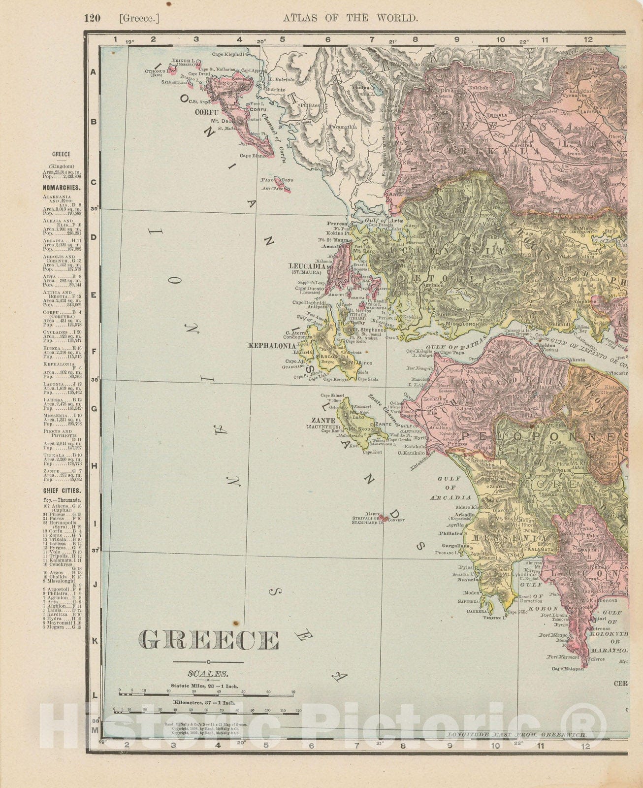 Historic Map : Greece 1900 , Universal Atlas World , Vintage Wall Art