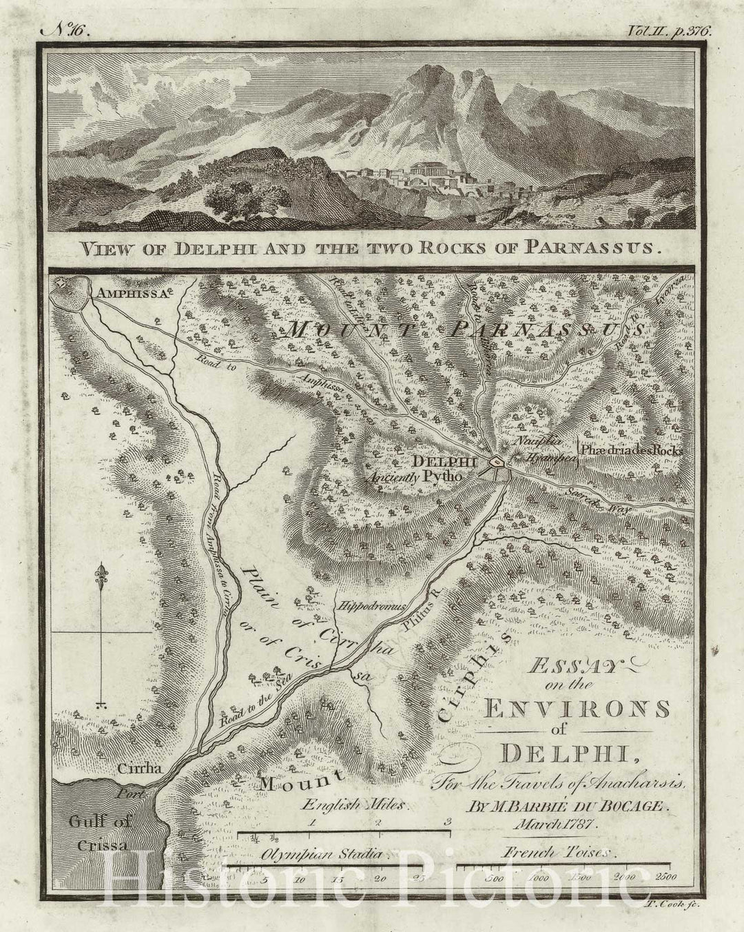 Historic Map : Bocage Map or Plan of Delhpi, Ancient Greece, 1787, Vintage Wall Art