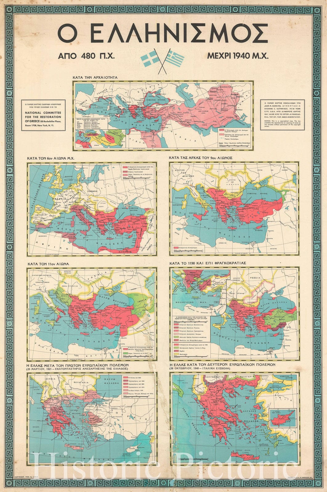 Historic Map : Restoration of Greece Broadside Map of Greece, 1943, Vintage Wall Art