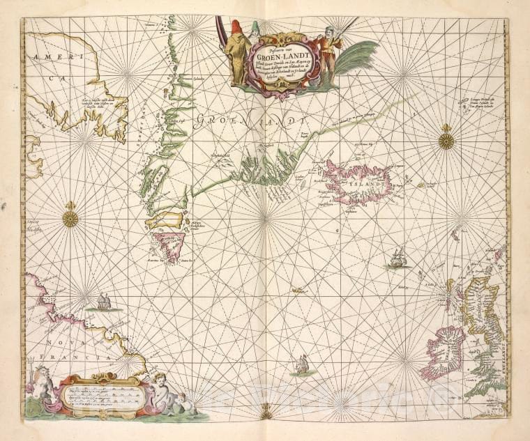 Historic Map - 1672 Greenland, Pascaerte Van Groen-Landt,Yslandt, Straet Davids En Ian Mayen Eylandt Hoemen De Selvige Van Hitlandt En De Noortcusten