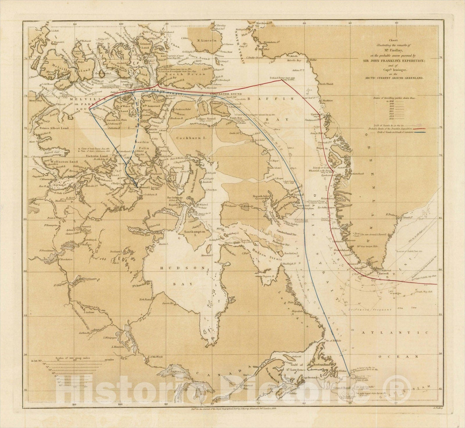Historic Map : the Arctic Current Around Greenland., 1856, John Murray, Vintage Wall Art