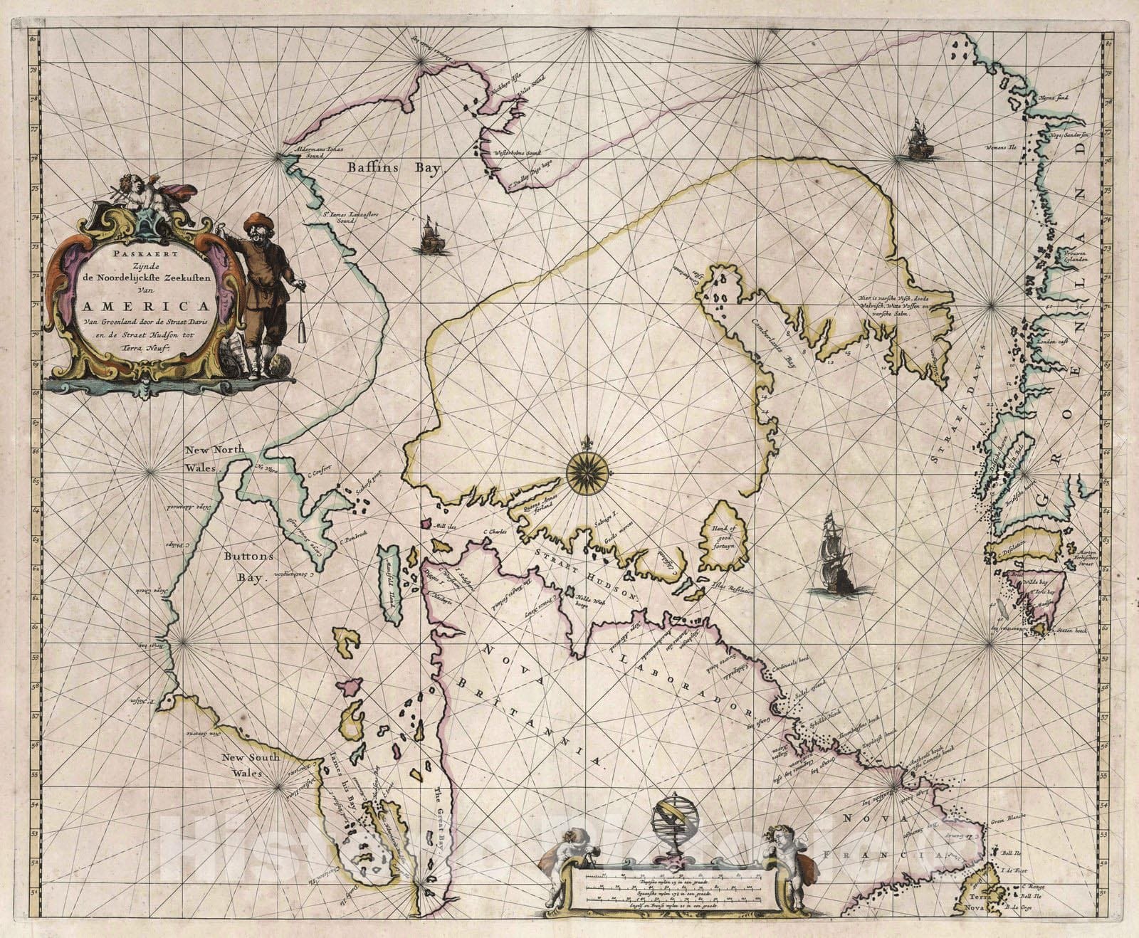 Canada, Greenland 1667 Paskaert Zynde de Noordelijckste Zeekusten Van America. , Vintage Wall Art
