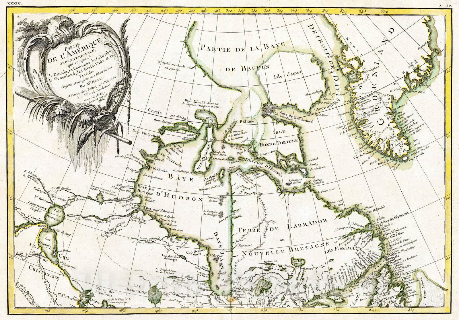 Historic Map : Canada; Greenland, 1783 L'Amerique Septentrionale 1. , Vintage Wall Art