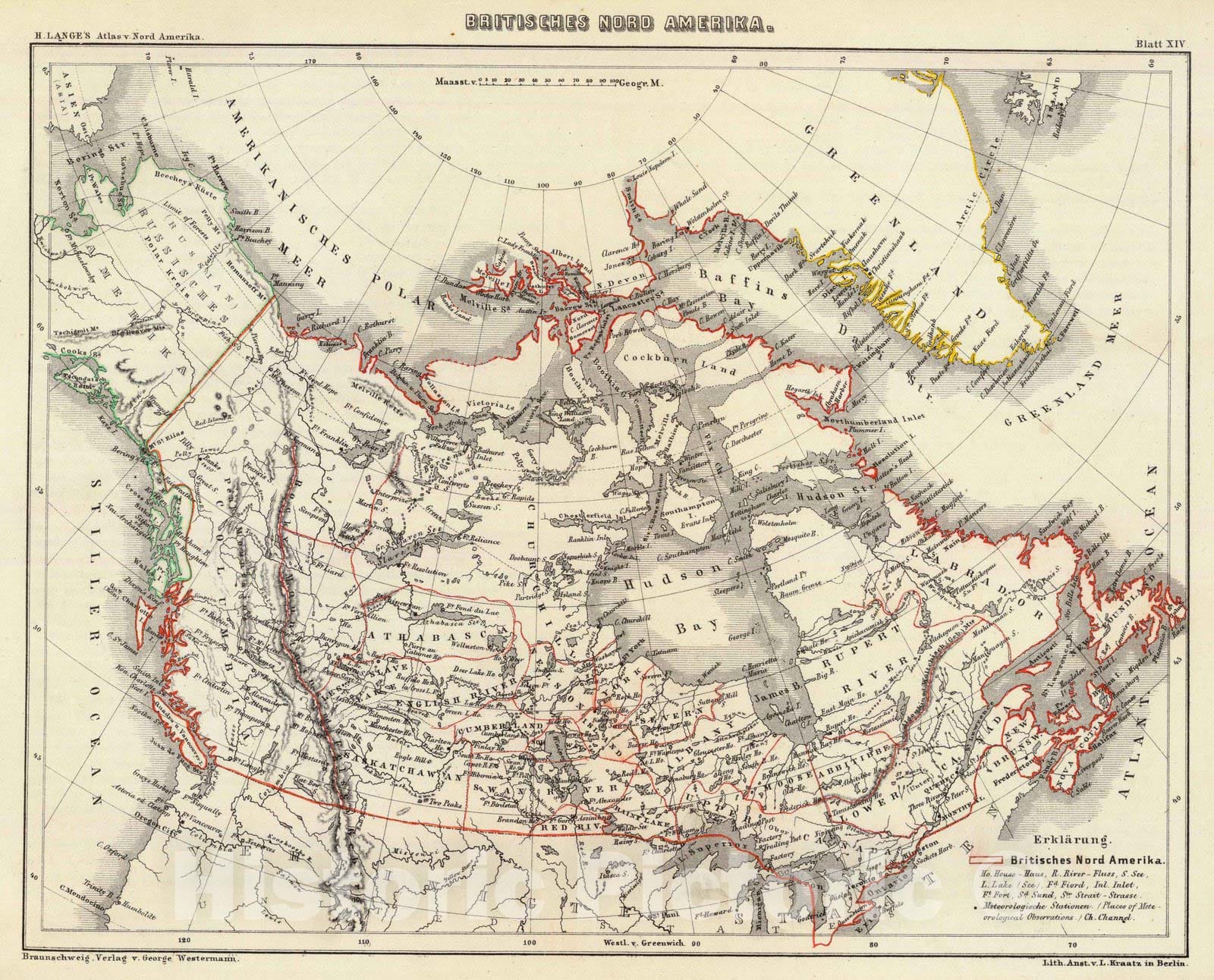 Historic Map : Canada; Greenland, 1854 Britisches Nord Amerika. , Vintage Wall Art