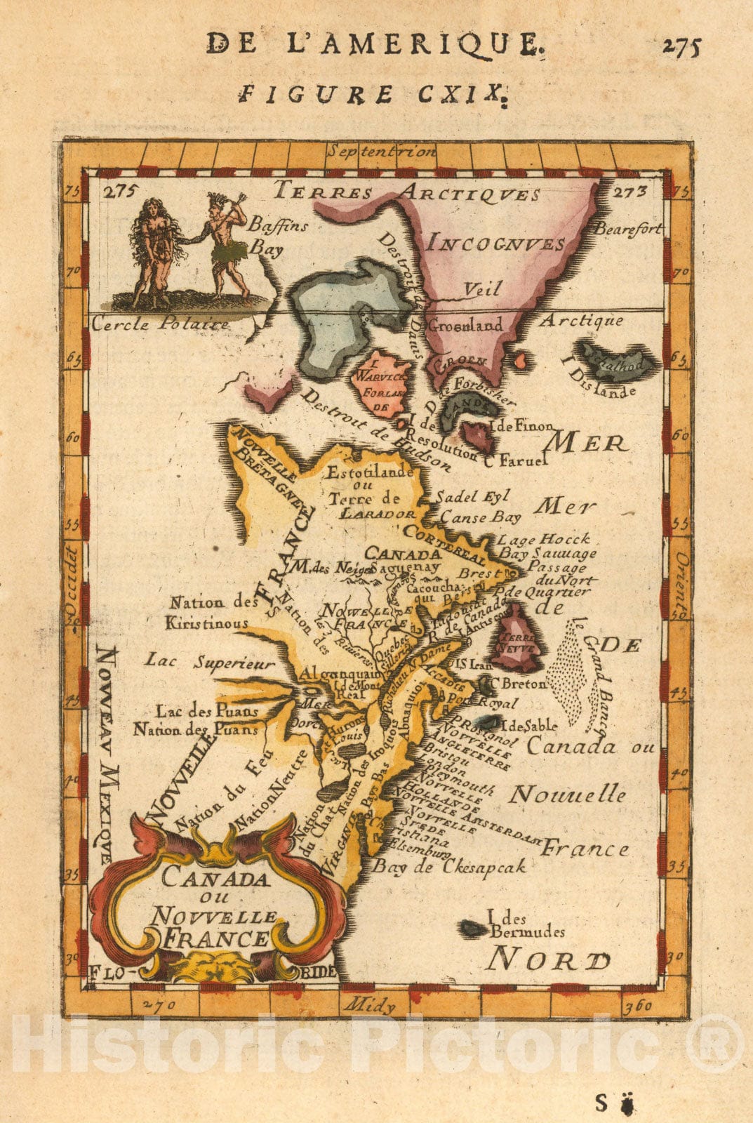Historic Map - Canada ou Nouvelle France [Virginia to Greenland]/Canada or New France [Virginia to Greenland], 1683, Alain Manesson Mallet - Vintage Wall Art