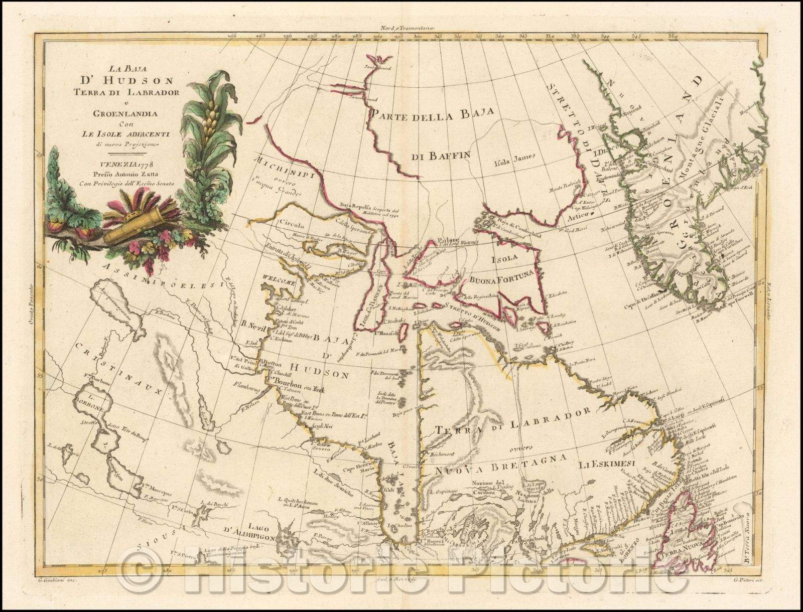 Historic Map - La Baja D'Hudson Terra Di Labrador e Groenlandia Con Le Isole Adiacenti :: Hudson Bay, Baffin Bay, Greenland, Labrador and Northern Canada, 1778 - Vintage Wall Art