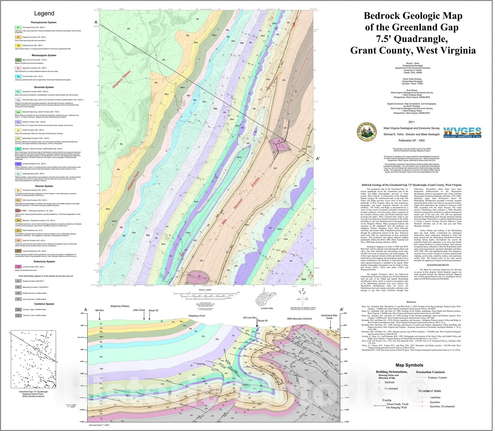 Bedrock geologic map of the Greenland Gap 7.5' quadrangle, Grant County, West Virginia