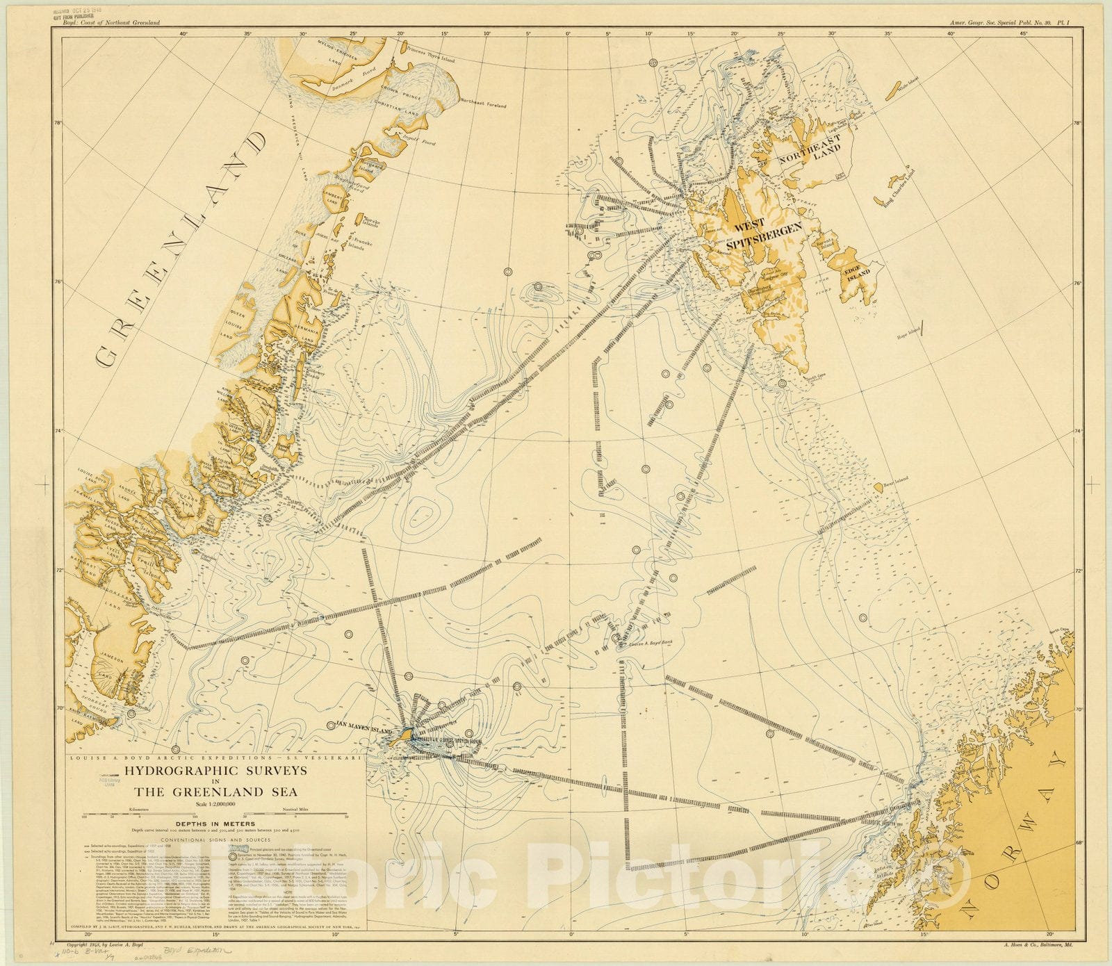 Map : Greenland Sea 1948, Louise A. Boyd Arctic expeditions - S.S. Veslekari hydrographic surveys in the Greenland Sea , Antique Vintage Reproduction