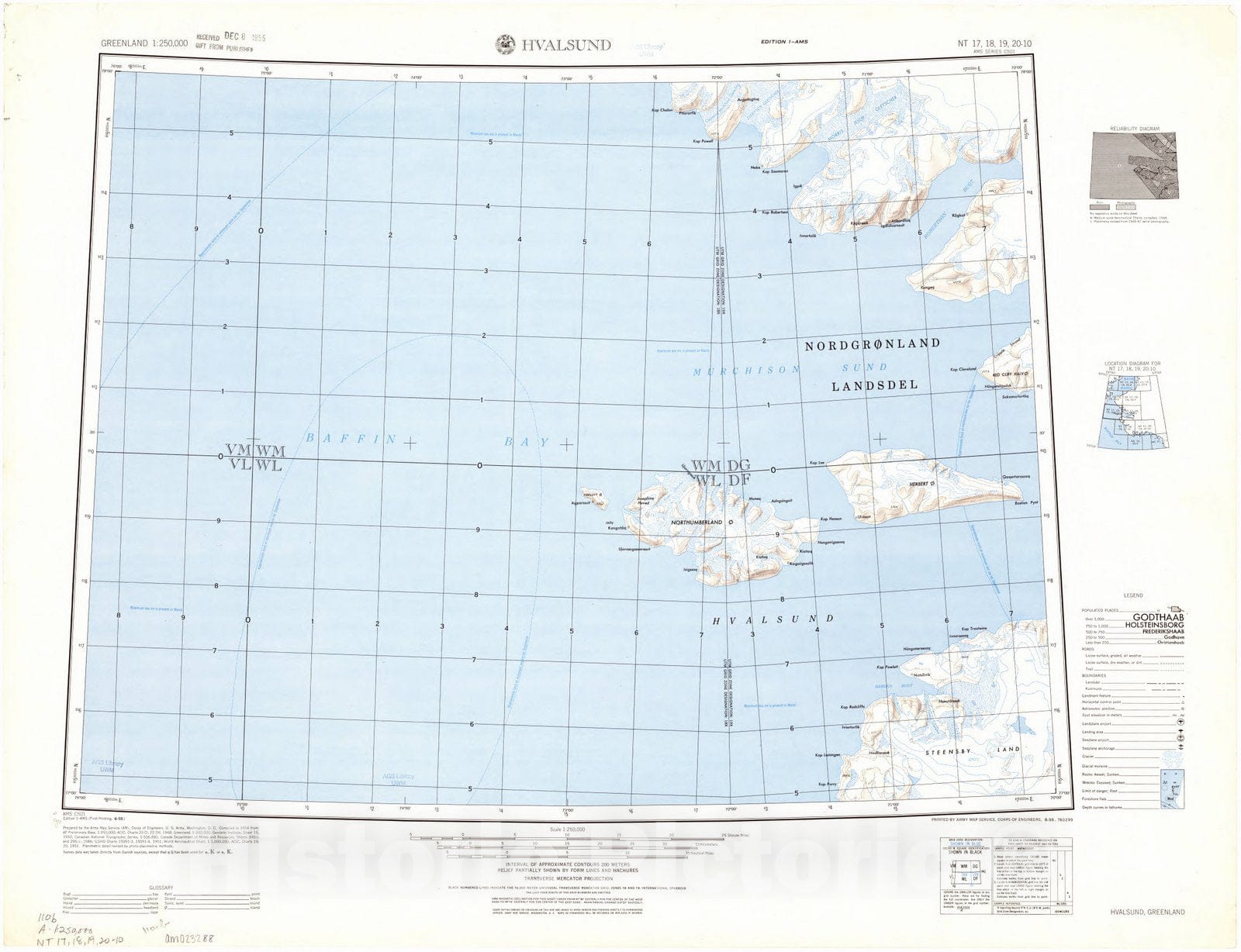 Map : Hvalsund, Greenland 1955, Greenland 1:250,000, Antique Vintage Reproduction