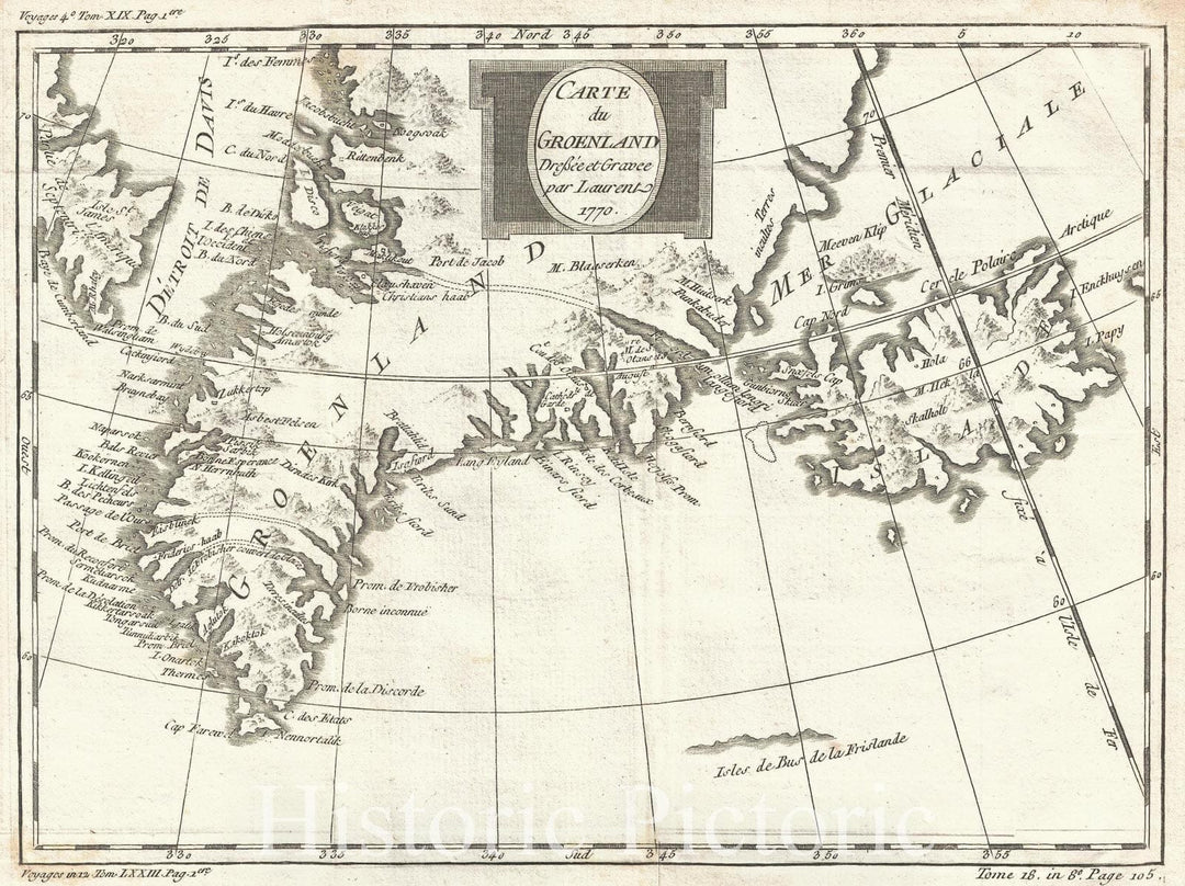 Historic Map : Greenland and Iceland, Bellin, 1770, Vintage Wall Art