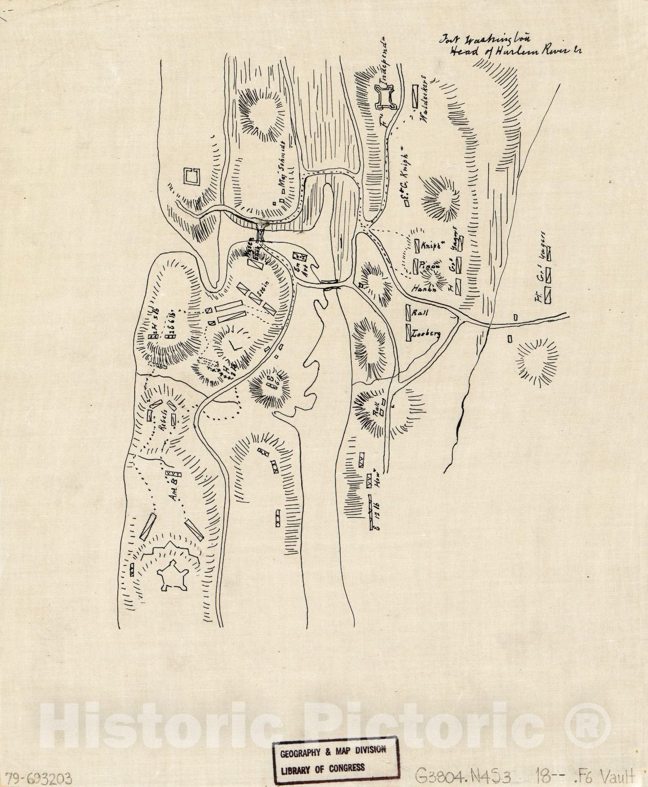 Historic 1812 Map - Fort Washington, Head of Harlem River.
