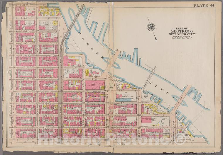 Historic 1911 Map - [Plate 41: Bounded By E. 136Th Street, Harlem River, First Avenu