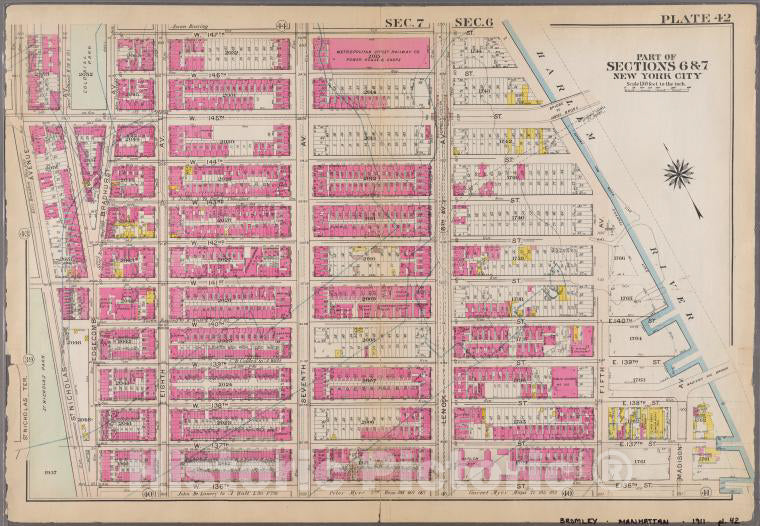 Historic 1911 Map - [Plate 42: Bounded By W. 147Th Street, Harlem River (Channel Lin
