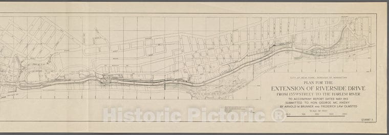 Historic 1913 Map - Plan For The Riverside Drive Extension From 155Th Street To The Harlem River (Exhibit A.) Of New York City And State - Manhattan - Vintage Wall Art
