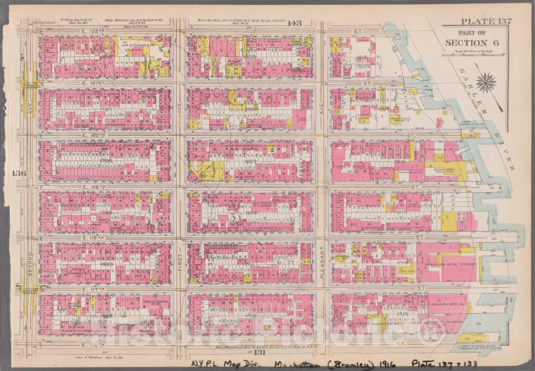 Historic 1916 Map - Plate 137: [Bounded By E. 122Nd Street, (Harlem River) Pleasant