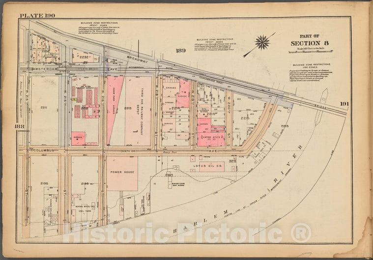 Historic 1927 Map - Plate 190, Part Of Section 8: [Bounded By Broadway, (Harlem Rive
