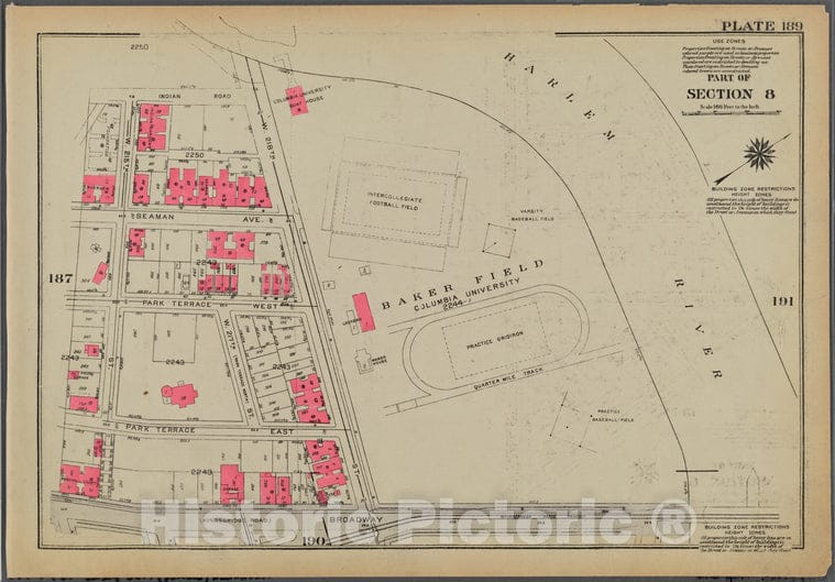 Historic 1930 Map - Plate 189, Part Of Section 8: [Bounded By Indian Road, (Harlem R