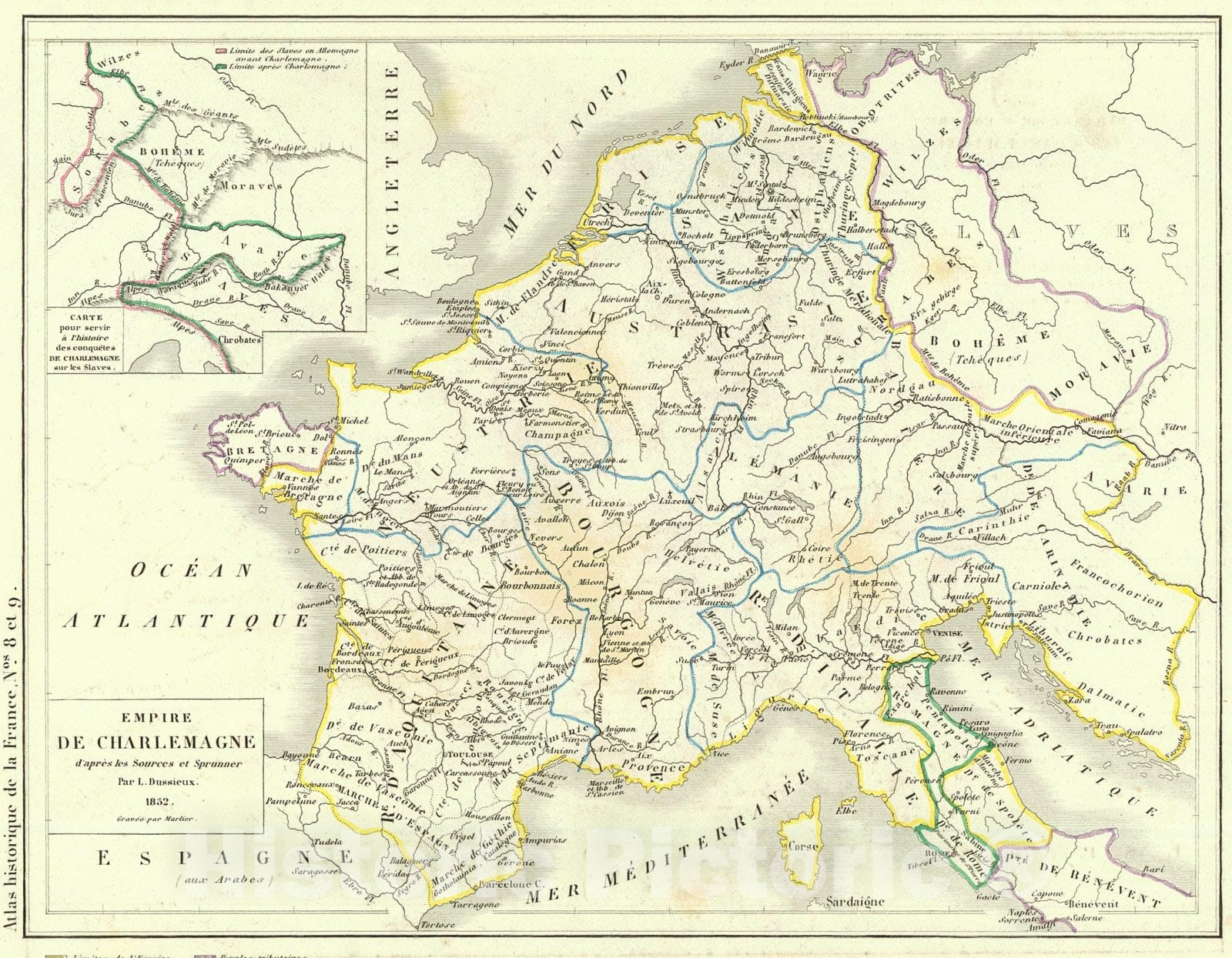 • .Historic Map : 1856 Empire De Charlemagne d'apres les Sources et Sprunner : Vintage Wall Art