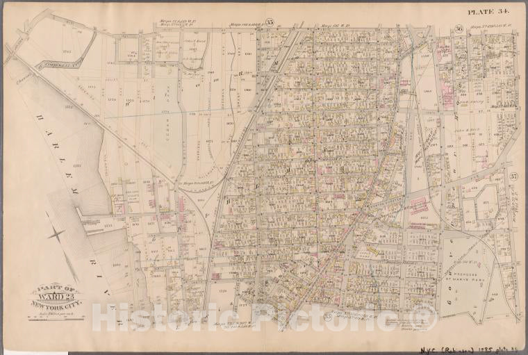 • .Historic Map - 1885 New York (N.Y.) [Plate 34: 161St St, Ann'S, Clifton St, Forest, West Chester, Robbins, 144Th St, Mott, 148Th St, Harlem River And Jerome.] - Vintage Wall Art