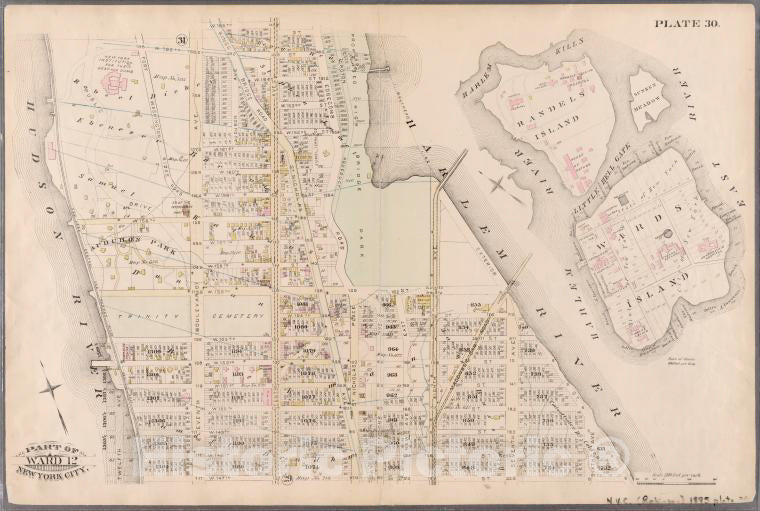Historic Map - 1885 New York (N.Y.) [Plate 30: W. 166Th, Croton Aqueduct, Edgecomb Road, W. 155Th, Exterior (Harlem River), W. 147Th And (Hudson River) Eleventh.]