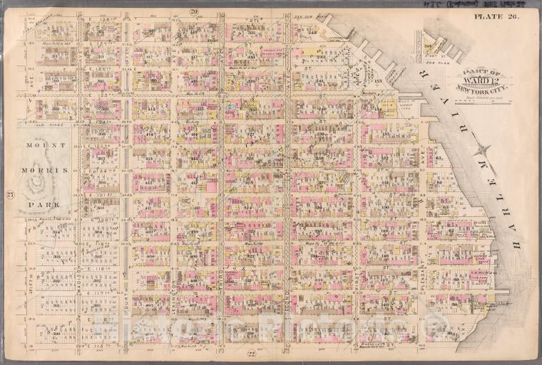 Historic Map - 1885 New York (N.Y.), [Plate 26: Bounded By E. 128Th St, Harlem River, Pleasant, E. 115Th St, Fifth, E. 120Th St, Madison, E. 124Th St And Fifth.]
