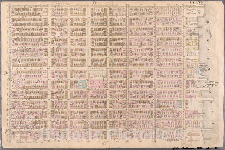 Historic Map - 1885 New York (N.Y.), [Plate 13: Bounded By W. 40Th St, E. 40Th St, First Ave (Harlem River, Lumber Yards), E. 27Th St, W. 27Th St And Sixth Ave.]