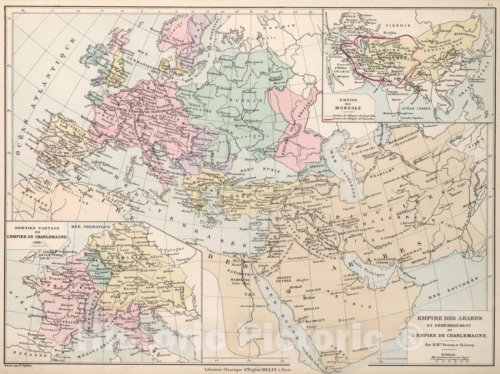 Historic Map : Empire des Arabs : des Dememberment de L'Empire de Charlemagne, 1886, Vintage Wall Art
