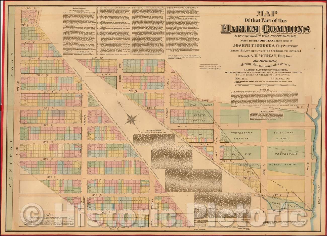 Historic Map - Map Of that Part of the Harlem Commons East of the 5th Ave & Central Park, 1871, John Bute Holmes - Vintage Wall Art