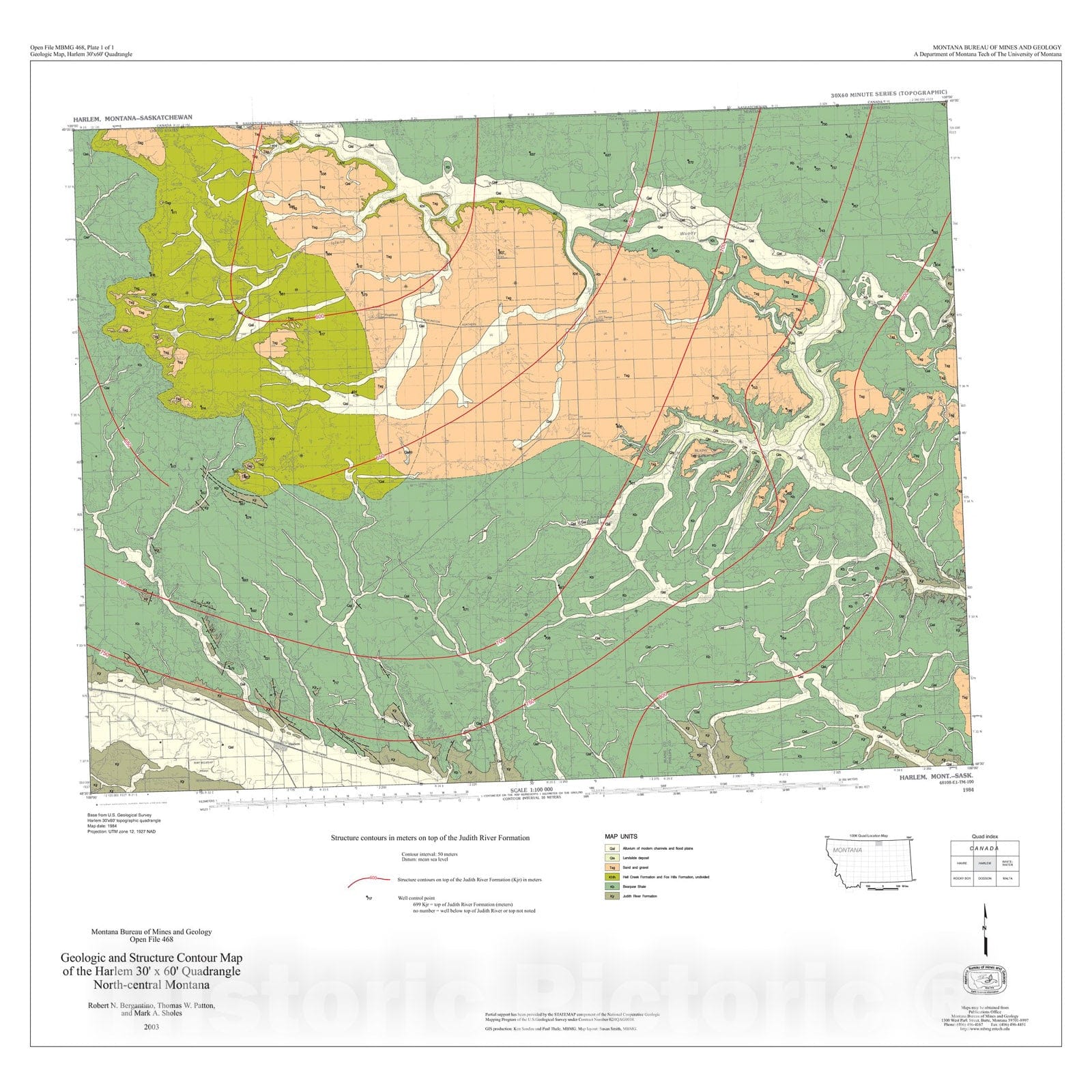 Map : Geologic and structure contour map of the Harlem 30' x 60' quadrangle, north-central Montana, 2003 Cartography Wall Art :