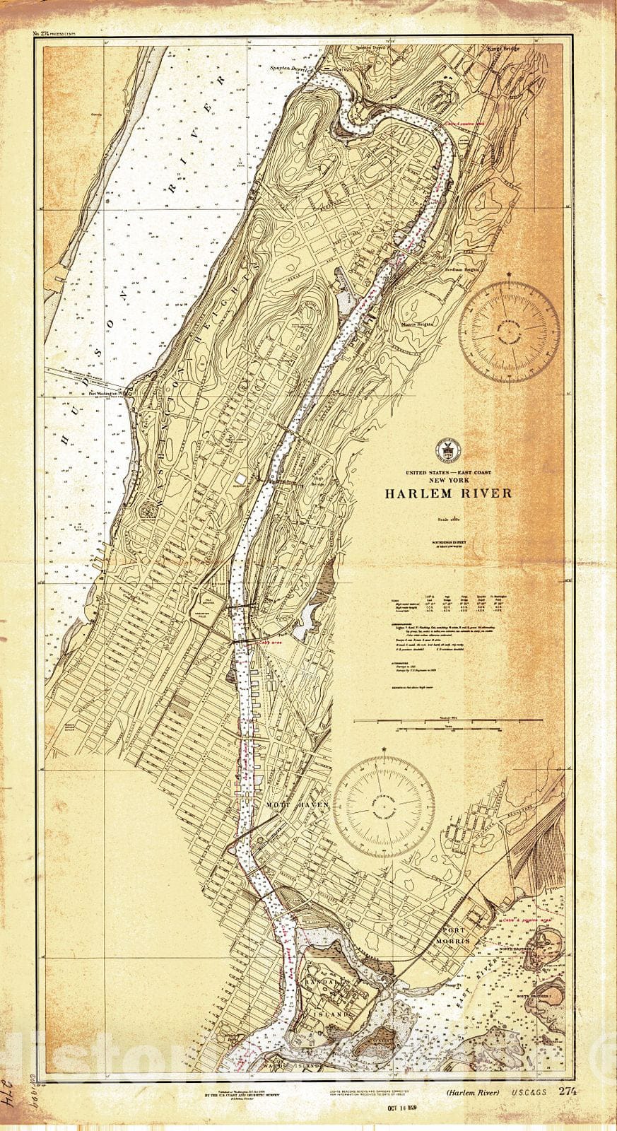 Historic Nautical Map - Harlem River, 1929 NOAA Chart - Vintage Wall Art, v2