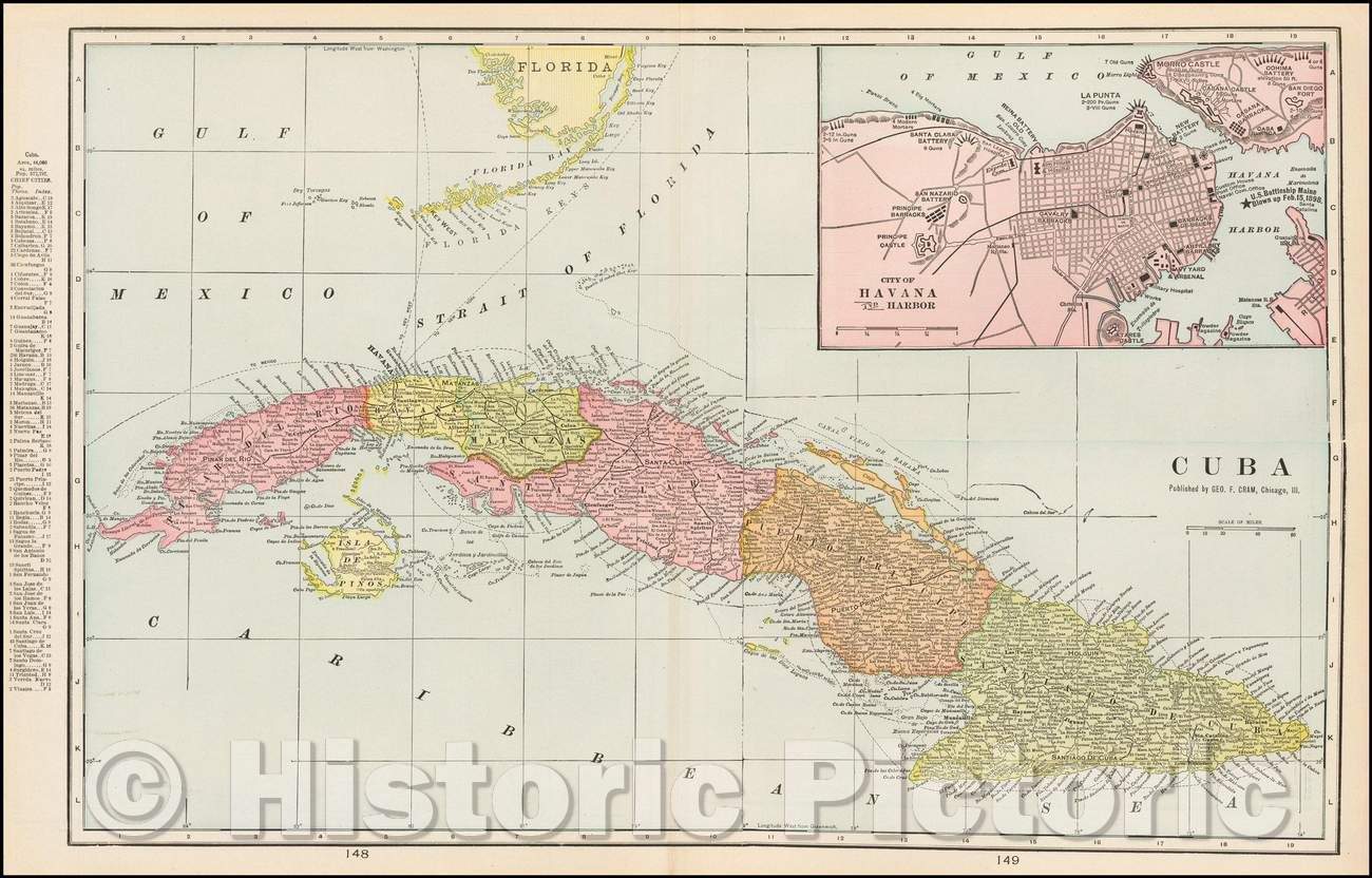 Historic Map - Cuba (Inset of City of Havana Harbor), 1892, George F. Cram - Vintage Wall Art